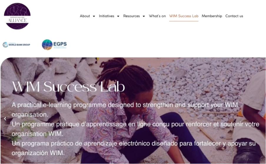 WiM Success Lab: A World Bank–supported project delivered by IWIM with Satarla, strengthens Women in Mining organisations through eLearning. It builds governance, leadership, financial and technical skills, supporting advocacy and sustainability. The flexible, multilingual, free platform offers modular, inclusive training for global WIM leaders, volunteers, and members to collaborate and apply best practices.
